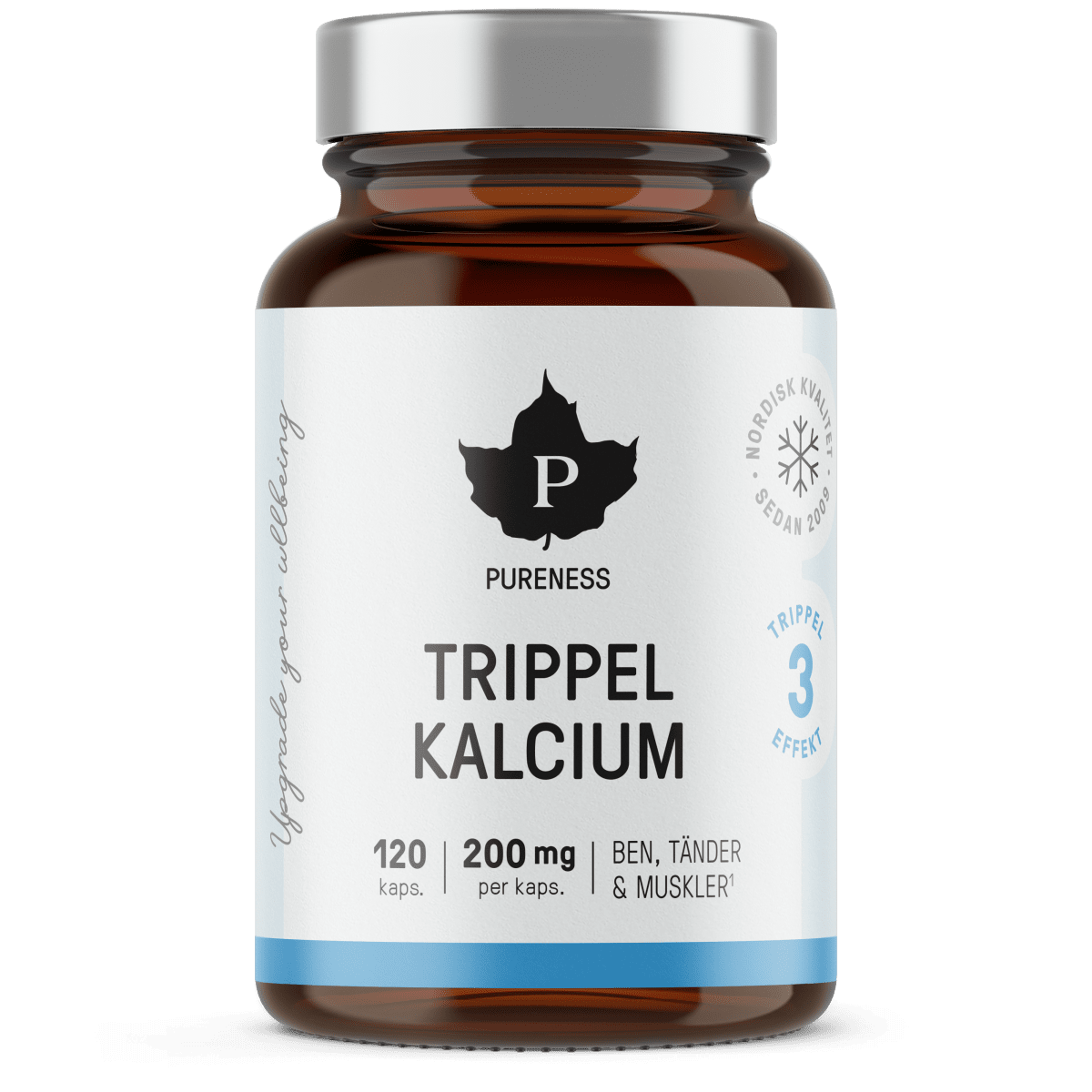 Pureness Trippel Kalcium kombinerar tre förstklassiga former av kalcium. Denna balanserade formula säkerställer att din kropp drar nytta av de unika egenskaperna hos varje kalciumform.